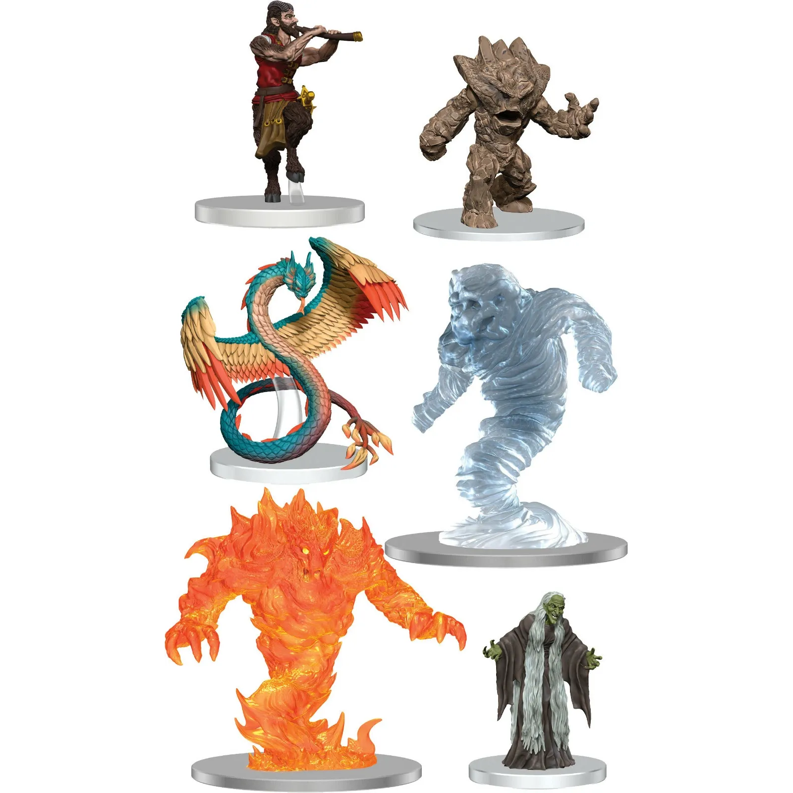 Ez a készlet különösen hasznos olyan kampányokban, ahol gyakran kerülnek elő elementálok, idézett lények vagy különleges mágikus ellenfelek. A három elementál eltérő megjelenése vizuálisan is azonnal felismerhetővé teszi a harctéri helyzetet. A couatl színes, szárnyas alakja, a green hag fenyegető figurája és a satyr karakteres formája pedig történetmeséléshez is kiváló eszköz.